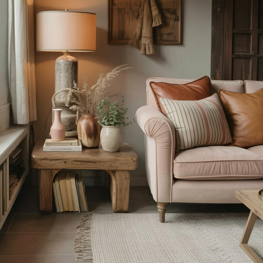 Rustic Sculptural Floor Lamp With Side Table For Bedroom